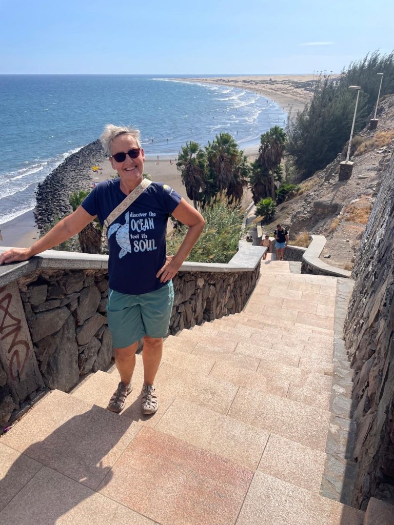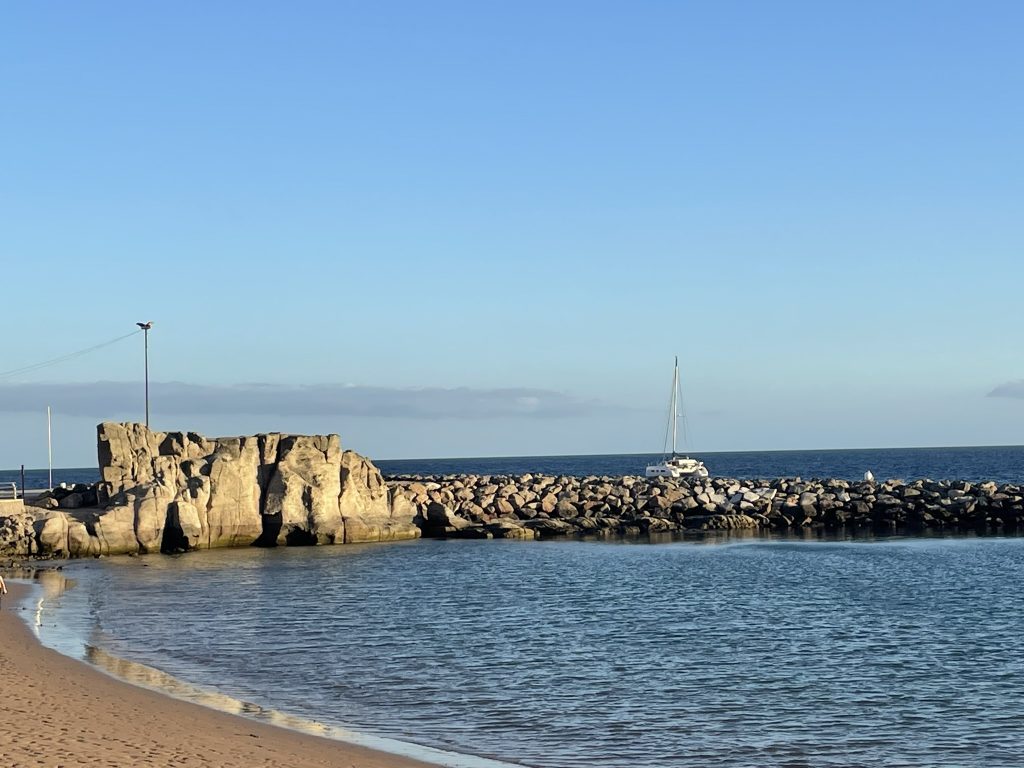 02.10. Maspalomas & Playa del Ingles Wir stehen früh auf (07:30), weil wir heute in die Marina wollen, bevor der Wind uns wieder einen Strich durch die Rechnung macht. So gegen halb zehn sind wir an unserem Liegeplatz und es dauert nicht lange, da fängt der Wind wieder an zu blasen. Wir frühstücken und machen uns dann zu Fuß auf den Weg nach Playa del Ingles.