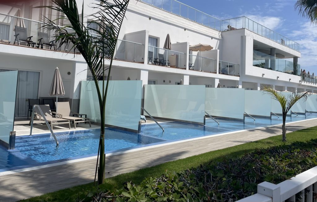 Am Strand von Maspalomas angekommen überfällt uns der Massentourismus mit luxuriösen Kaninchenställen mit jeweils eigenem Pool.