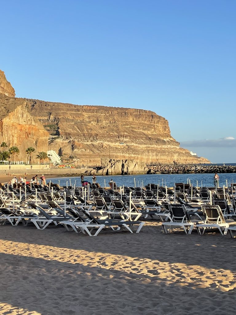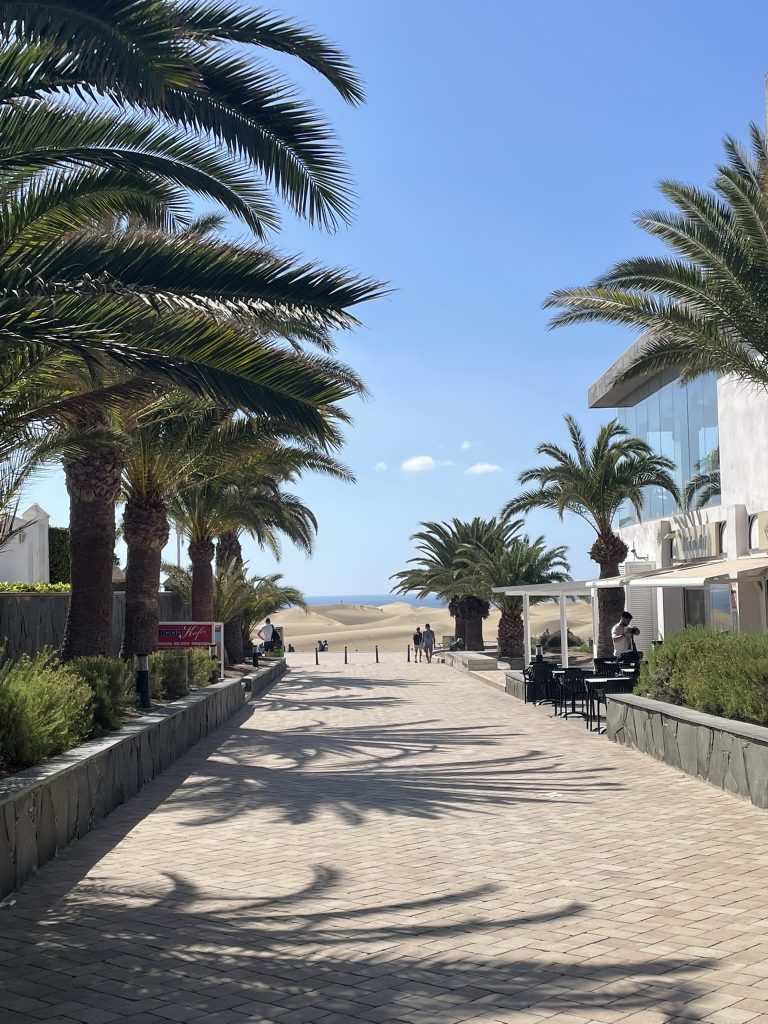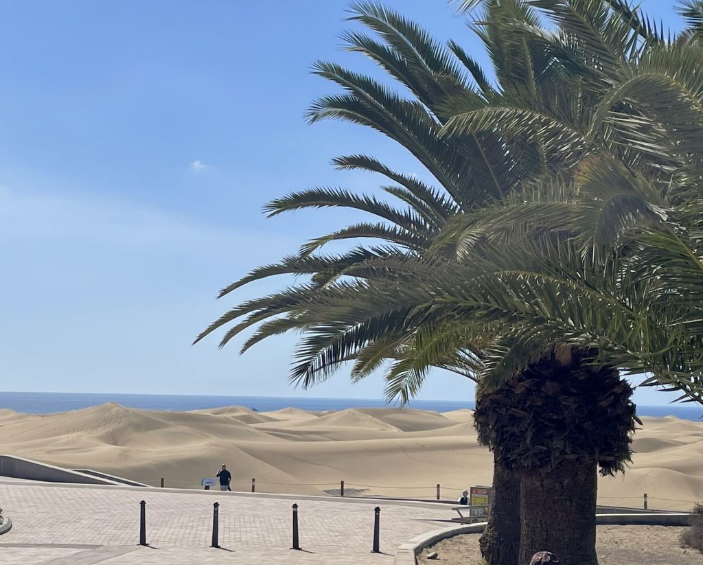 Der wirklich sehr schöne Sandstrand mit den Dünen von Playa del Ingles wird bevölkert von Menschen ohne Badebekleidung. (Aus ästhetischen Gründen gibt es hierzu keine Fotos).
