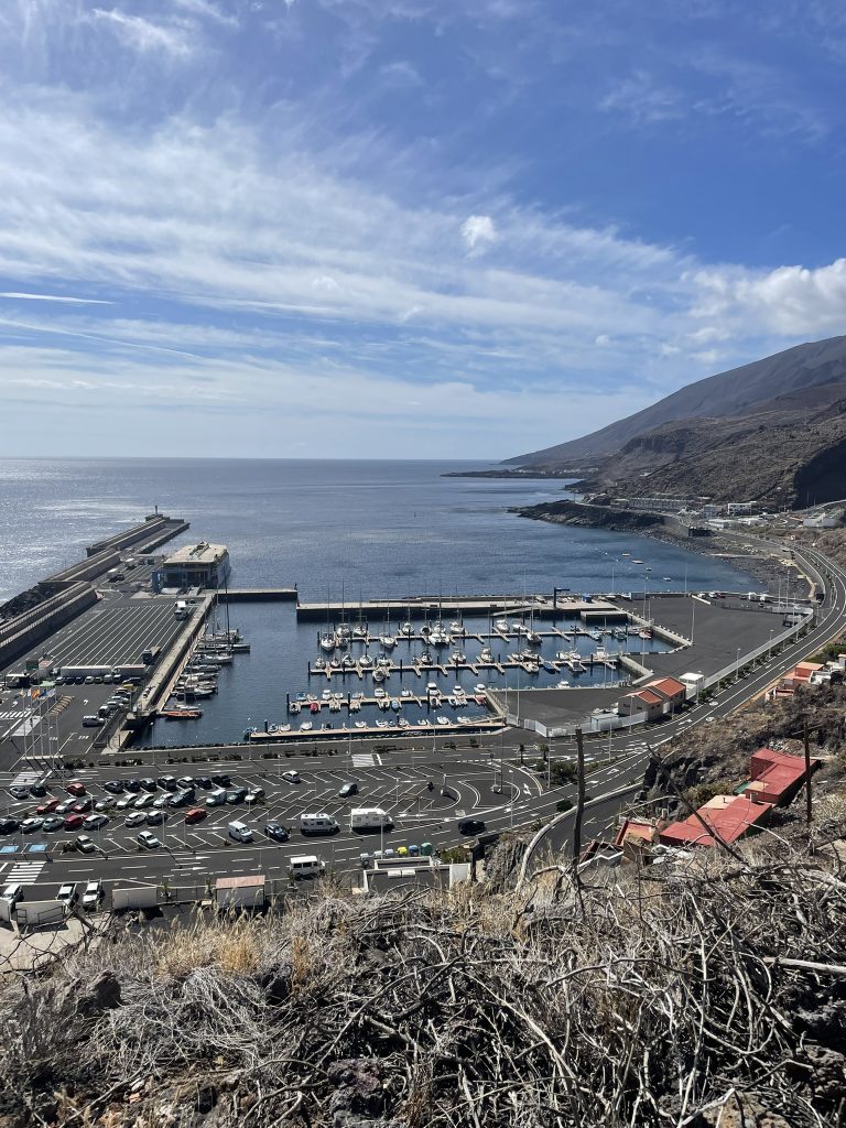 La Gomera hat uns wirklich gut gefallen, El Hierro soll auch wunderschön sein – schauen wir mal. Auf meine E-Mail Anfrage für einen Liegeplatz in der Marina Estaca, habe ich sogar eine positive Antwort bekommen, obwohl laut zahlreicher Posts auf Navily angeblich keiner antwortet. Das fängt jedenfalls schon mal gut an 👍. Als wir vor dem Hafen sind und ich unsere Ankunft per Funk übermittele, bekomme ich auch beim 2. Versuch eine Antwort „wir sollen in die Marina fahren“. So weit – so gut, beim Anlegen hilft hier aber keine Marinero, es gibt schlichtweg keine. Die Marina wird von der Hafenpolizei verwaltet. Zum Glück sind Olivia und Matthias von der Mahuida IV zur Stelle und nehmen unsere Leinen an. Wir kommen sofort mit den beiden ins Gespräch und verabreden uns auf ein kühles Getränk bei uns an Bord. Es wird ein schöner Abend mit den beiden.