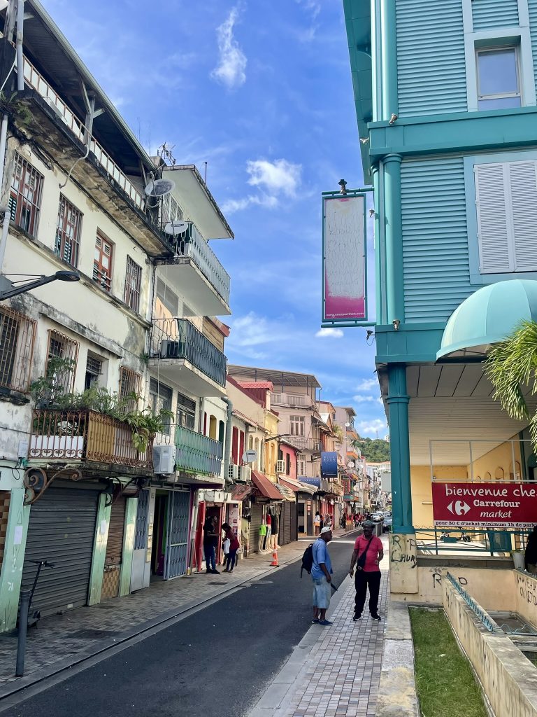 In der Fußgängerzone lacht uns ein Crêpes Restaurant an. Die Crêpes sind lecker und die Musik, die gespielt wird gefällt uns sehr gut. Ich spreche den Inhaber an, der sich freut, dass uns die Musik gefällt und mir die entsprechende Playlist bei Spotify eintippt . Wir schlendern weiter durch die Stadt und ich entdecke einen schönen Laden mit Bekleidung aus den typisch bunten Karibikstoffen. Ihr kennt mich – ich konnte nicht widerstehen