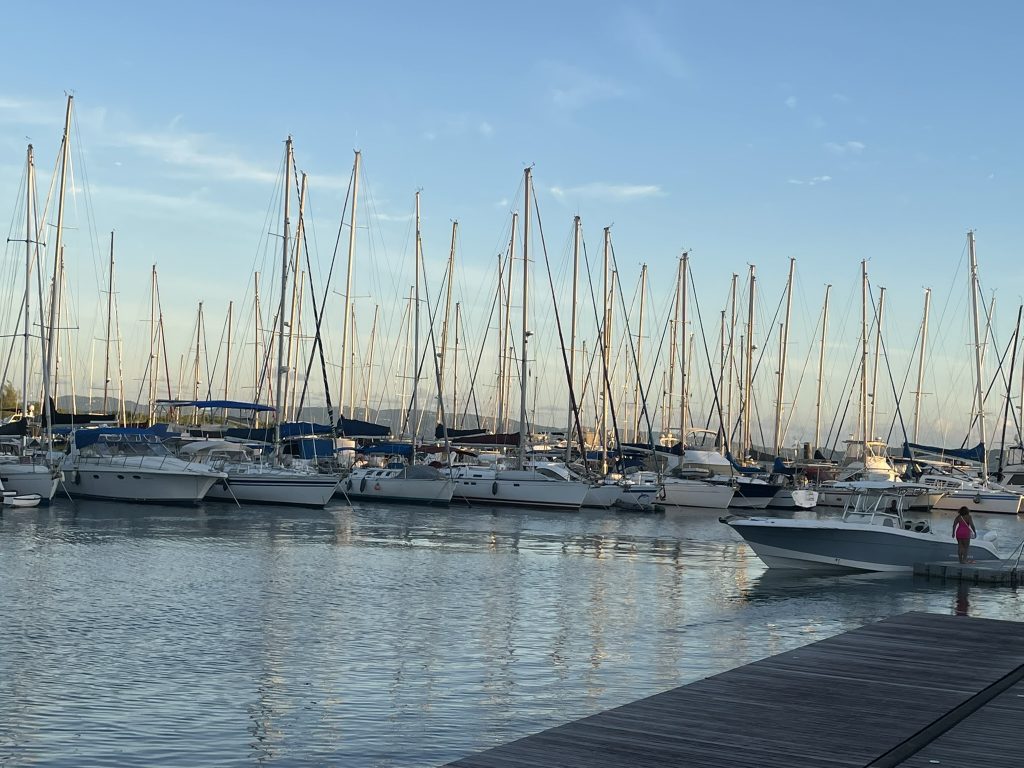 Nach 10 Min Fußweg erreichen wir wieder eine Bushaltestelle, sogar mit Fahrplan!, den man sich auch sparen kann, weil der Bus nicht kommt . Also laufen wir die letzte halbe Stunde auch noch zu Fuß. In der Baywatch Bar der Marina belohnen wir uns noch mit einem Cocktail und erreichen gerade noch vor der völligen Dunkelheit erschöpft unser Boot.