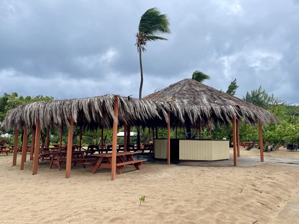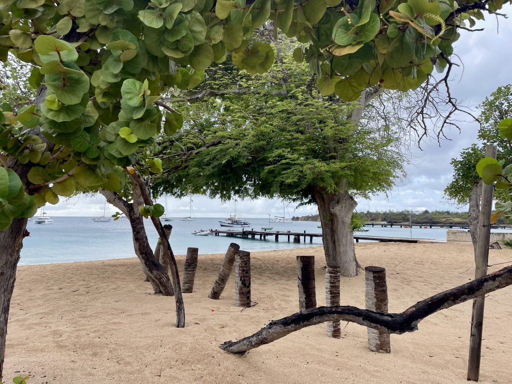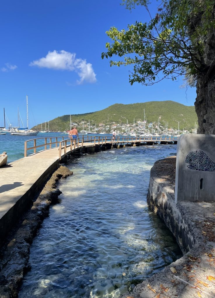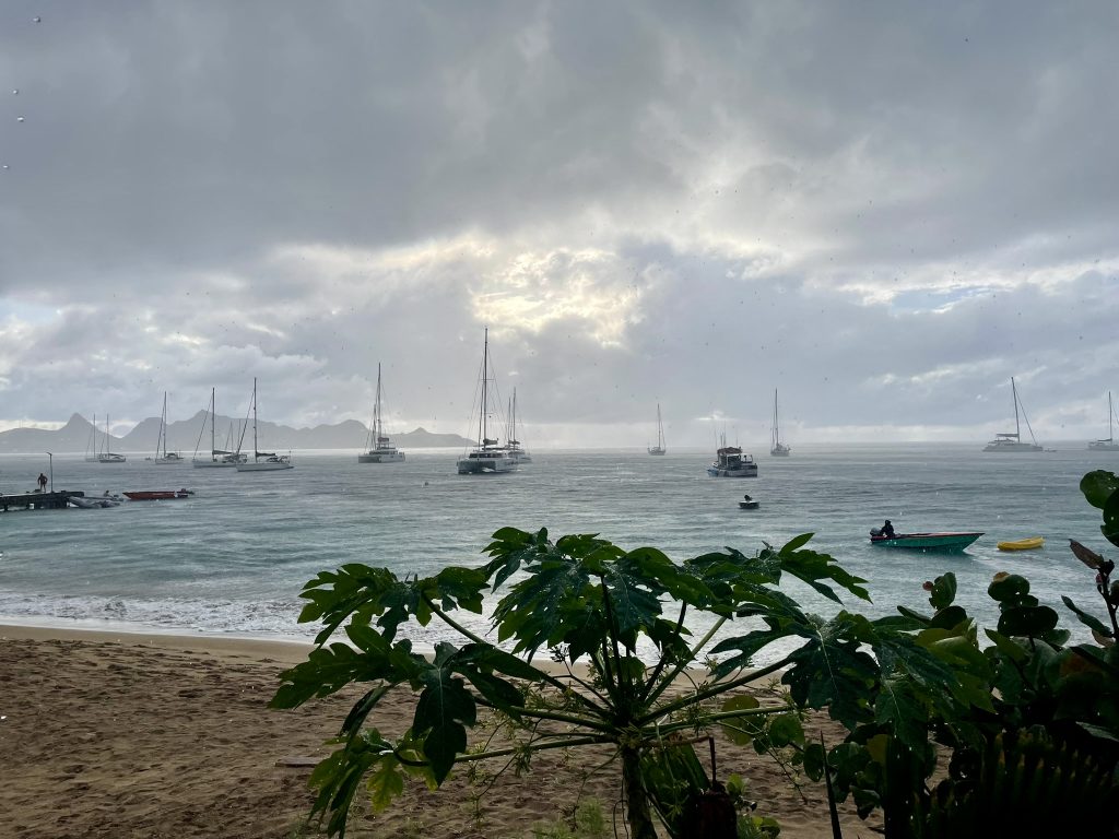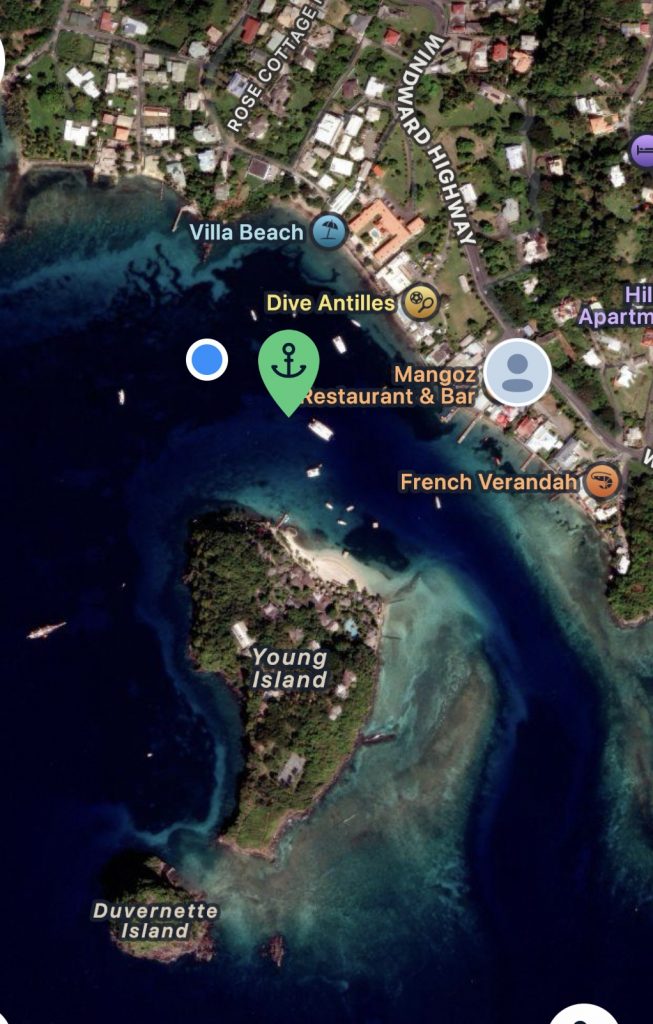 Als wir ankommen, ist tatsächlich noch eine Boje frei, die aber bei über 20kn Wind und Wellen nicht so einfach zu fangen ist. Nach 3 erfolglosen Versuchen, setzt sich ein älteres amerikanisches Paar ins Dinghi, um uns zu helfen und die Leine durch das Auge der Boje zu ziehen. Das ist für die beiden auch nicht komplikationslos, die Leine verheddert sich bei ihnen unter ein Handruder. Sie können es aber lösen – puuuh geschafft